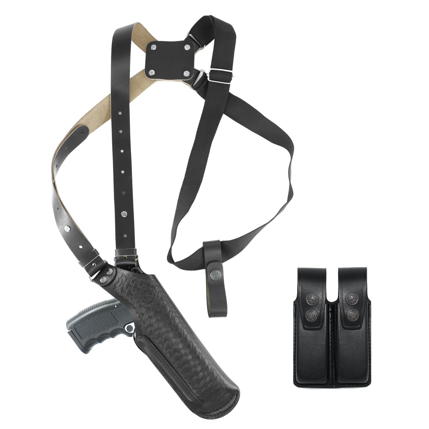 Koltster ALIS44503 Vertical- Horizontal Shoulder & Belt Holster with Double Mag Pouch Fits Colt Springfield Ruger Taurus 1911 RH Handmade! (Black)