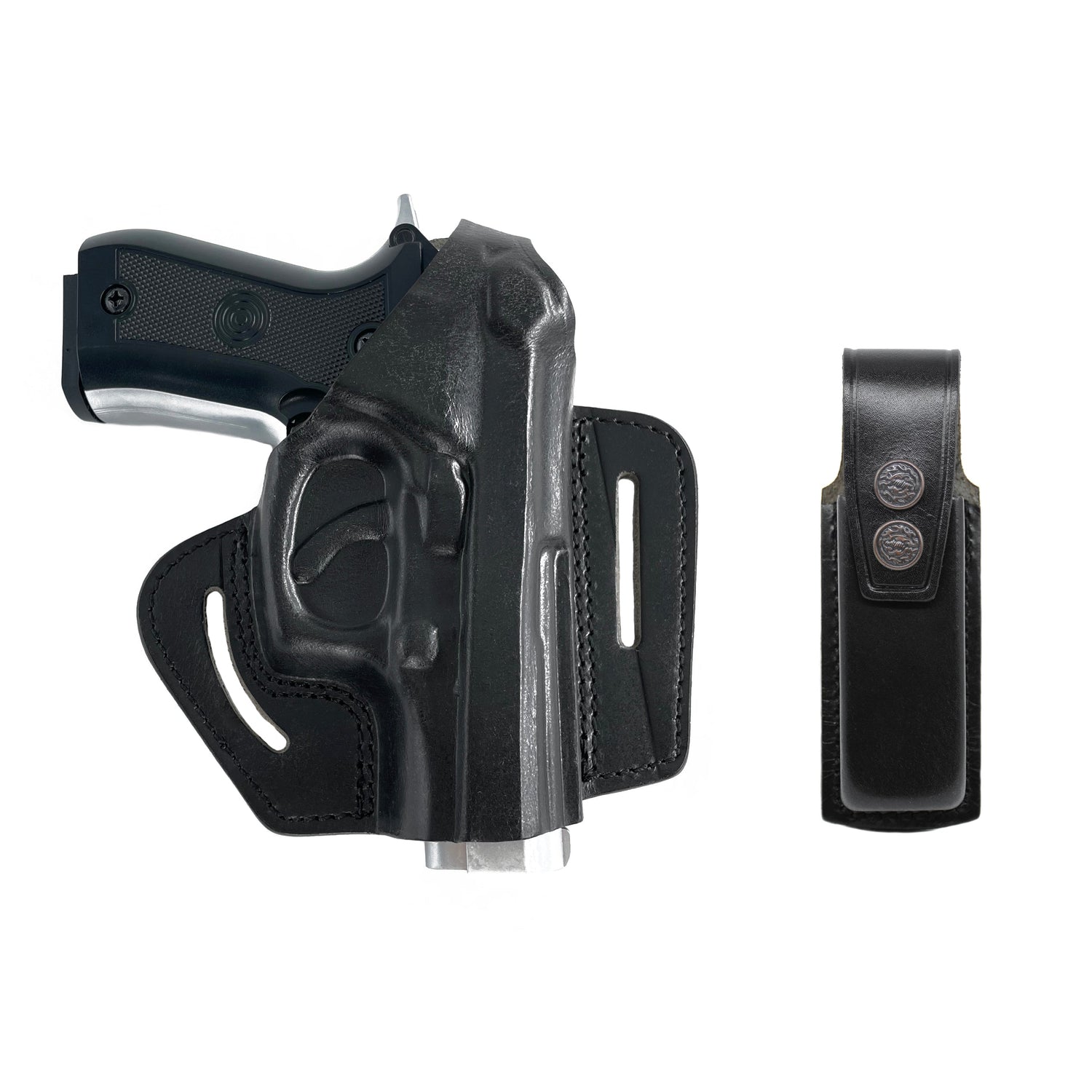 KHS339 Horizontal Shoulder & Belt Holster with Double Magazine Pouch RH Fits Glock 19 Handmade! Free Extension for Big Body Size!