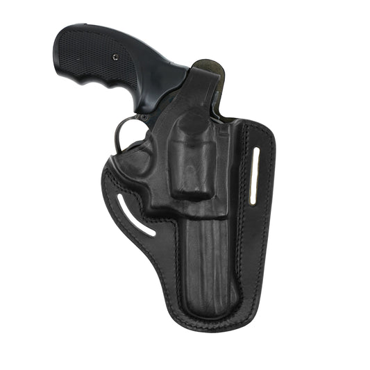 ALIS30538 2 Slot Pancake Leather Holster Thumb Break RH & Double Speedloader Case Fits 357 Magnum with 4" Handmade!