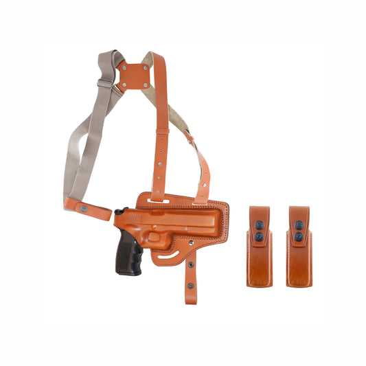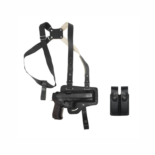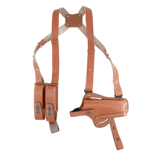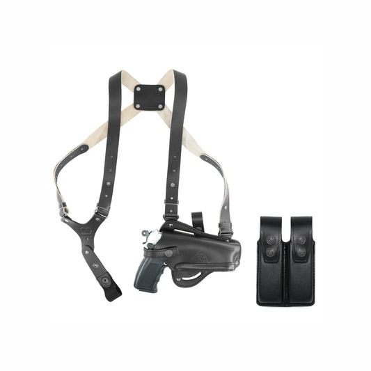KHS034303 Horizontal Shoulder & Belt Holster For Colt Ruger Springfield Taurus 1911 RH & Double Magazine Pouch Handmade! (2in1)