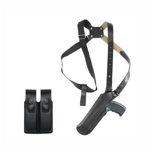 Basketweave Leather Vertical Shoulder Holster Colt 1911 & Double Magazine Pouch RH Handmade! (#K40003)
