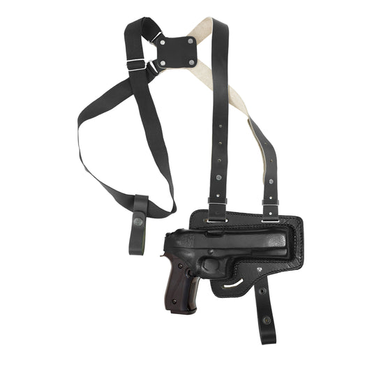 ALIS45303 Leather Vertical Shoulder Holster with Double Magazine Pouch Soft Fabric Interior Lining Colt 1911 up to 5" RH Geunine Leather Handmade