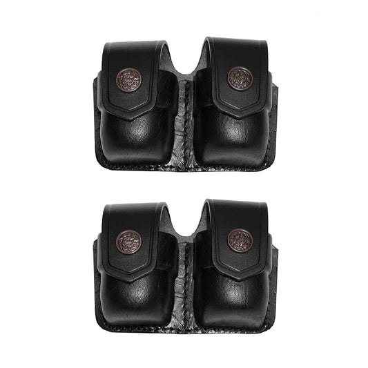 ALS3838 Two Double Speedloader Pouch for for 357 Magnum 6 & 7 Shots, 44 Magnum 5 Shot, S&W .38 Special 6 Shot speedloaders Genuine Leather Handmade!