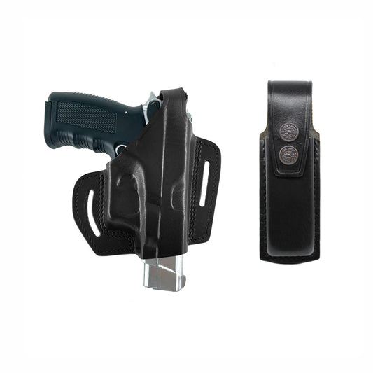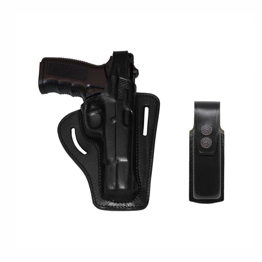 2 Slot Pancake Leather Holster Thumb Break Closed-end RH & Single Magazine Pouch Fits Browning HP Handmade! (#K30905)