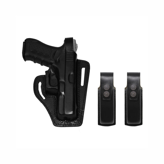 ALIS339092 Pancake Leather Holster Thumb Break RH & Double Magazine Pouch for Glock 19 Glock 23 Handmade!