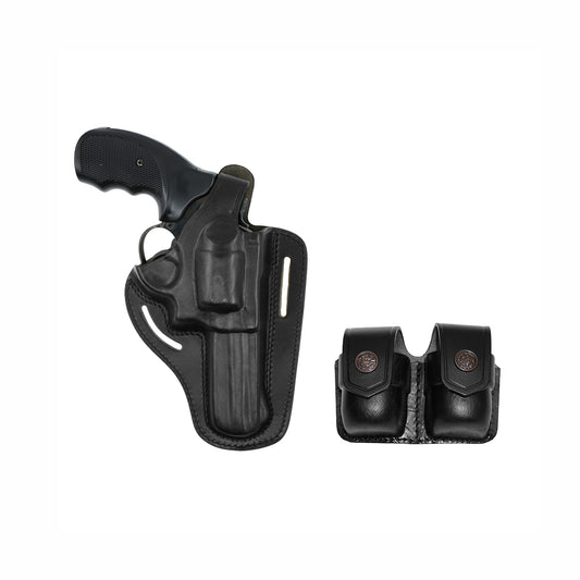 ALIS30538 2 Slot Pancake Leather Holster Thumb Break RH & Double Speedloader Case Fits 357 Magnum with 4" Handmade!