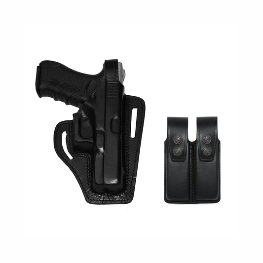 K467092 Small of Back Leather Holster RH & Double Magazine Pouch for Glock 17 Glock 22