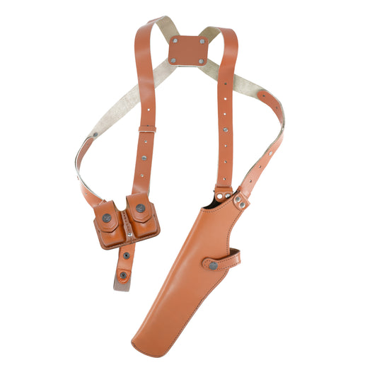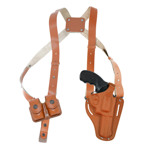 KHS305 Leather Vertical Shoulder & Belt Holster with Double speedloader Fits 357 Magnum & Similar Revolvers 4” Free Extension for Big Body Size!