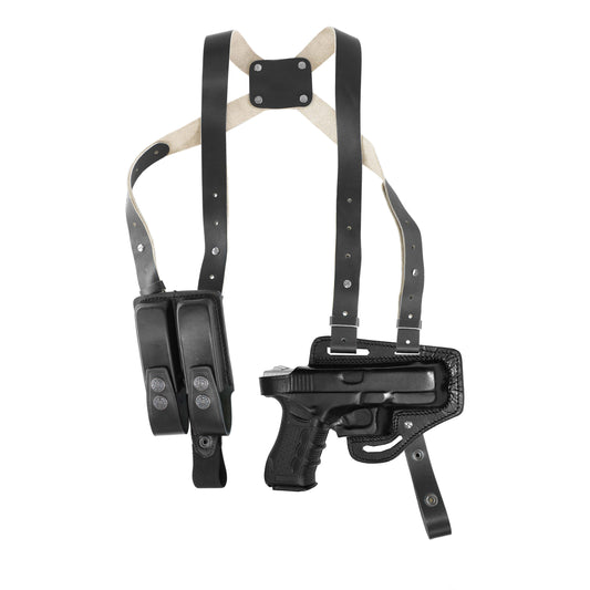 KHS339 Horizontal Shoulder & Belt Holster with Double Magazine Pouch RH Fits Glock 19 Handmade! Free Extension for Big Body Size!