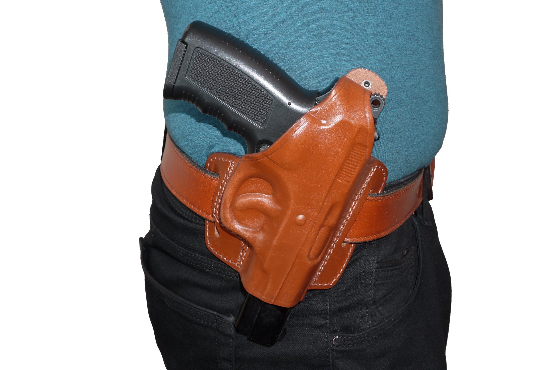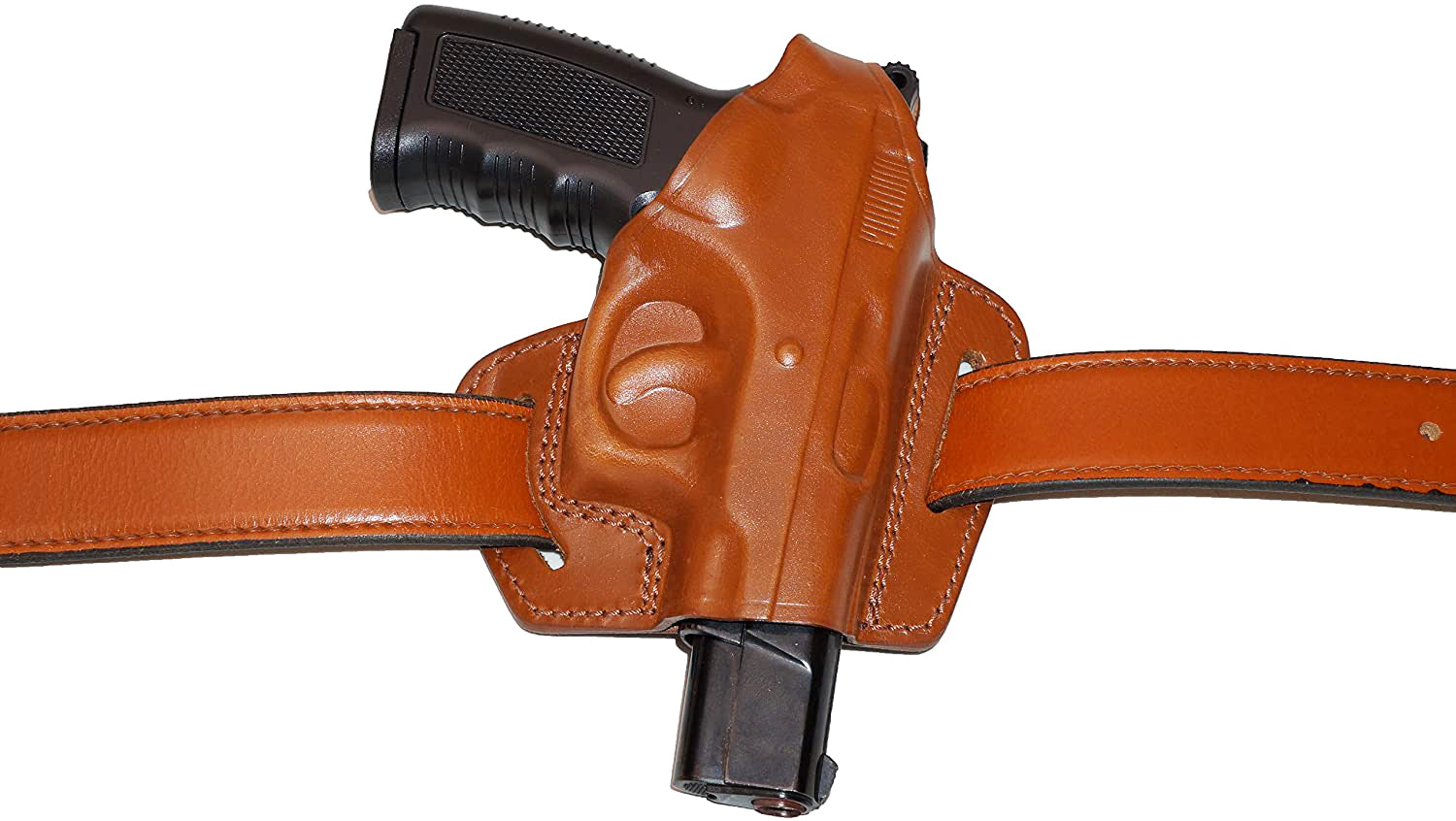 - Premium genuine cowhide leather belt retention holster excellent for concealed carry or open carry. ⦁ The molded leather gives a snug fit with no rattle or movement.