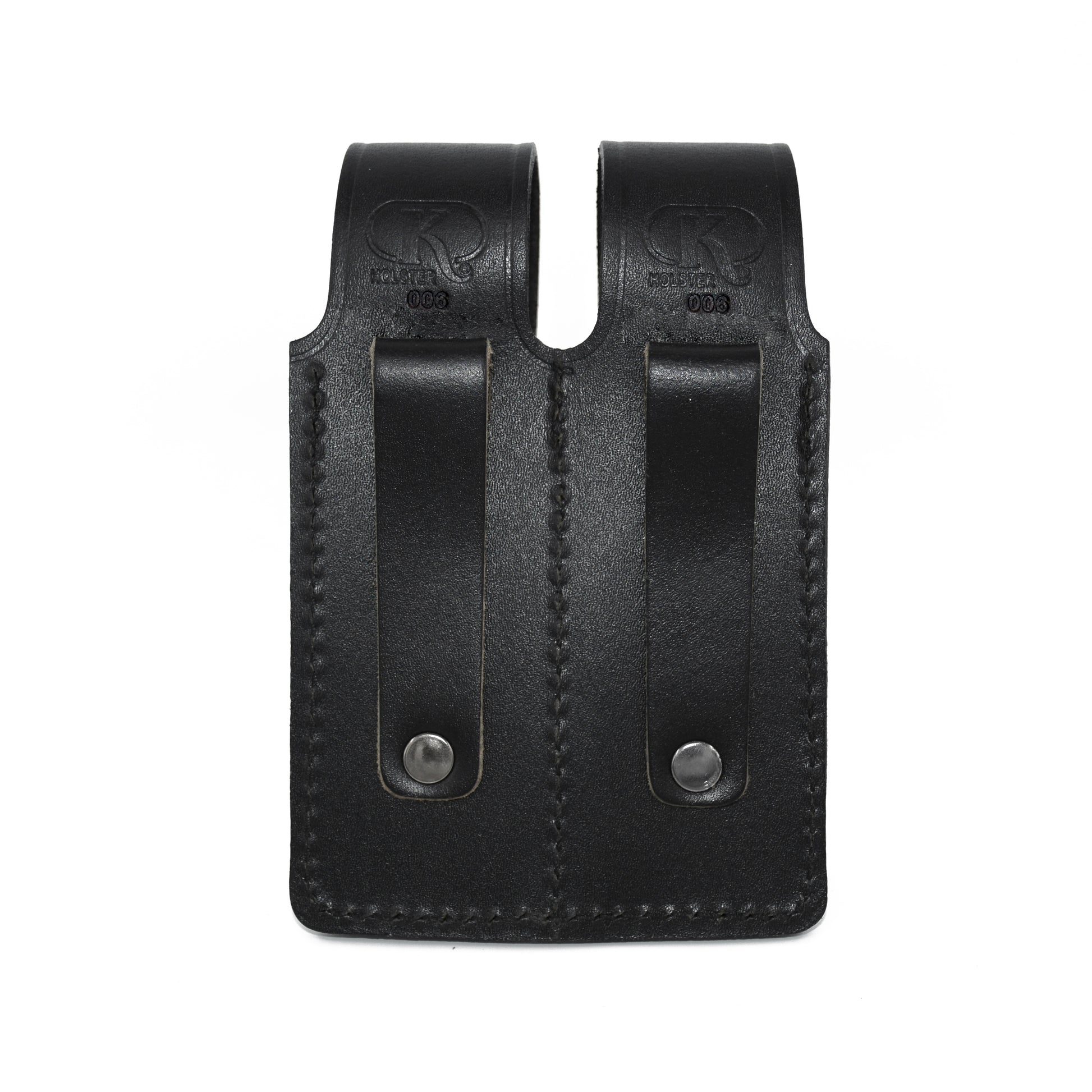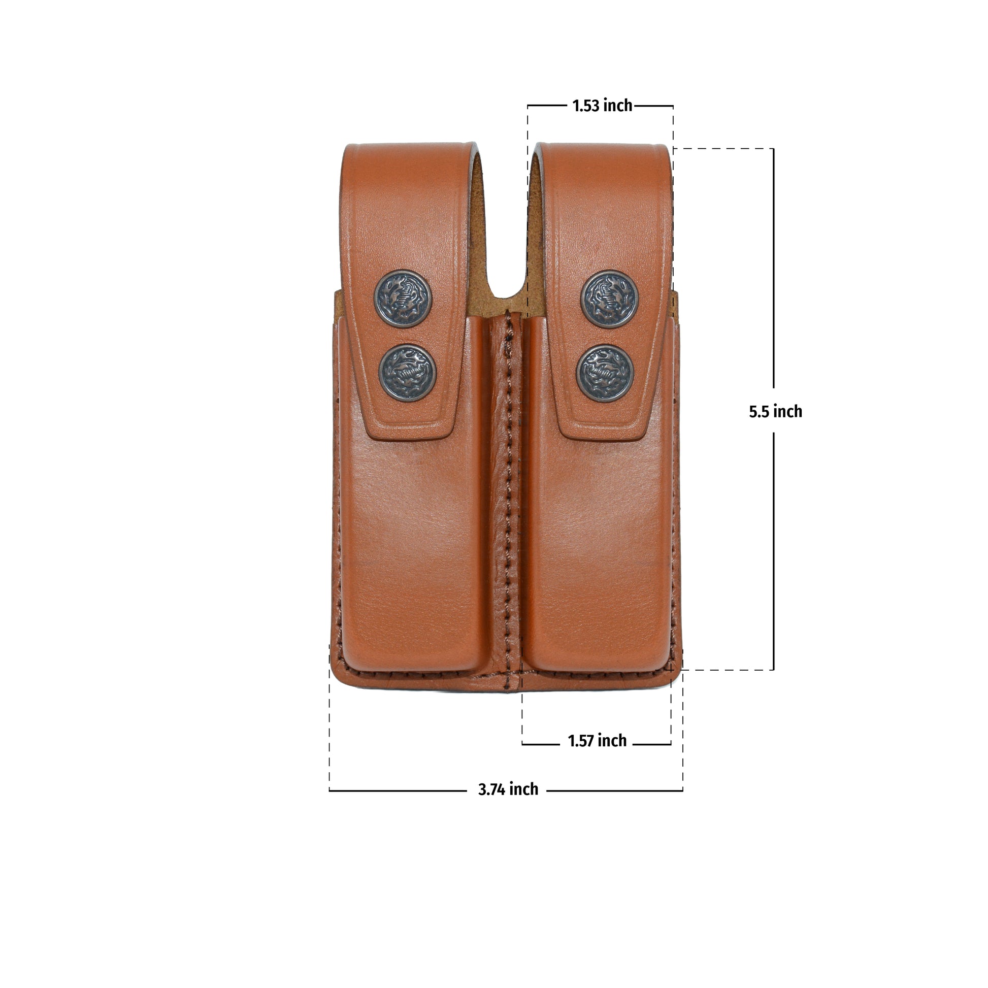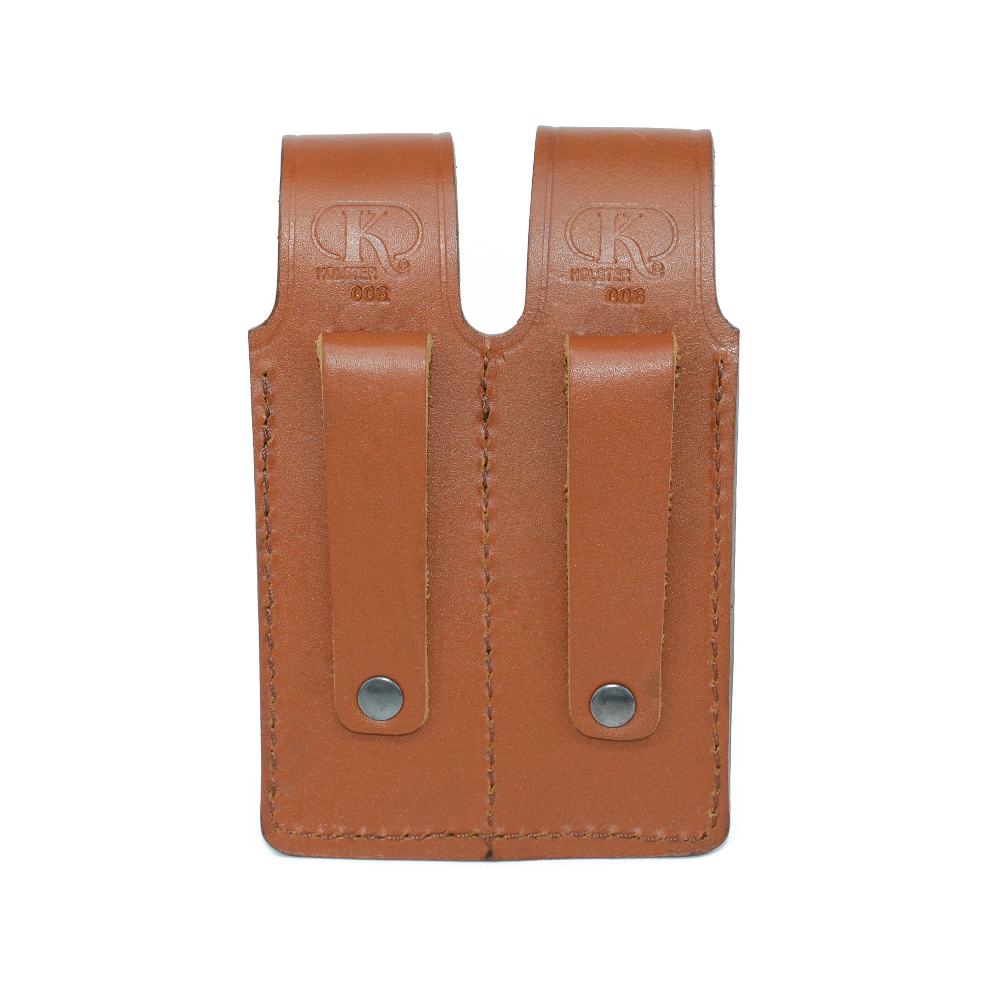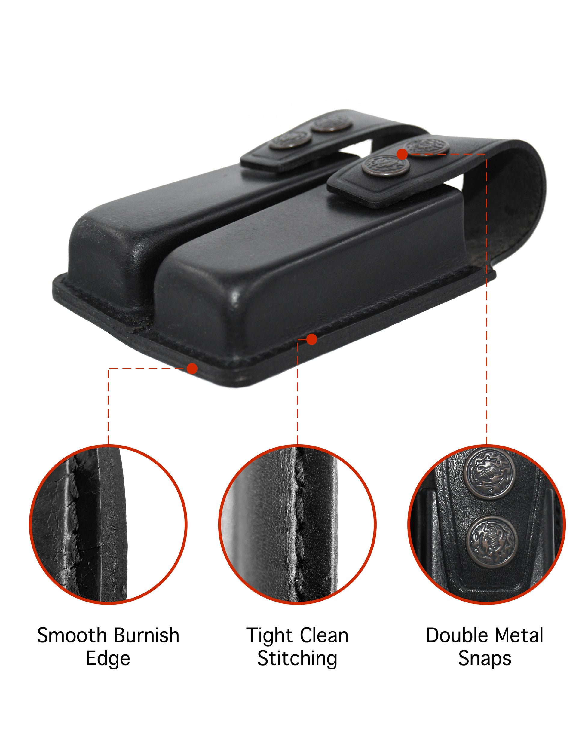 - High Quality Genuine Cowhide Leather with retention flaps. Holds two magazines.