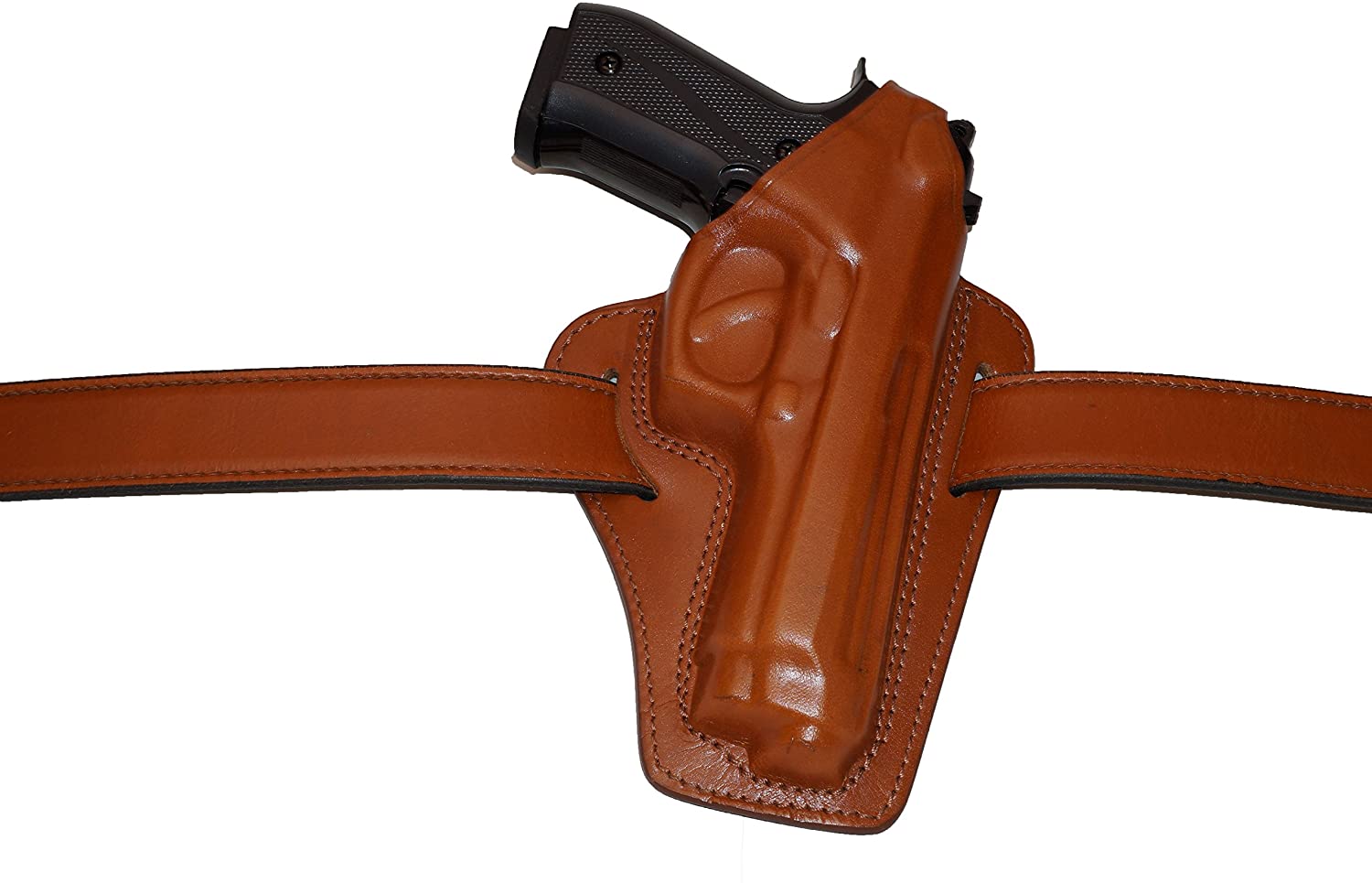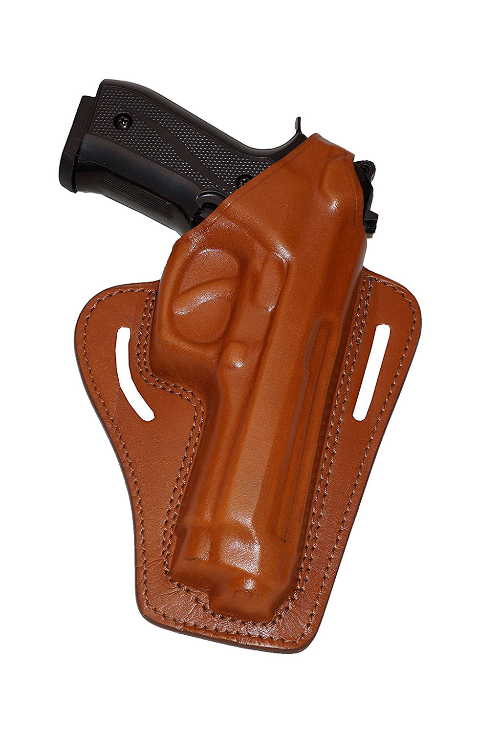 - Premium genuine cowhide leather belt retention holster excellent for open carry.