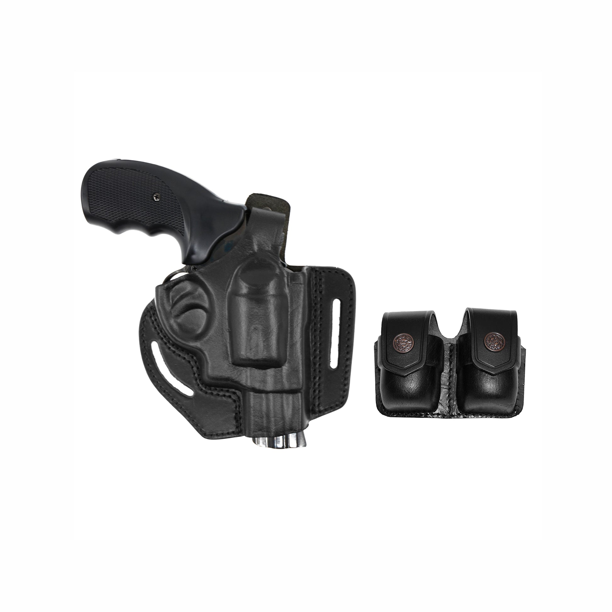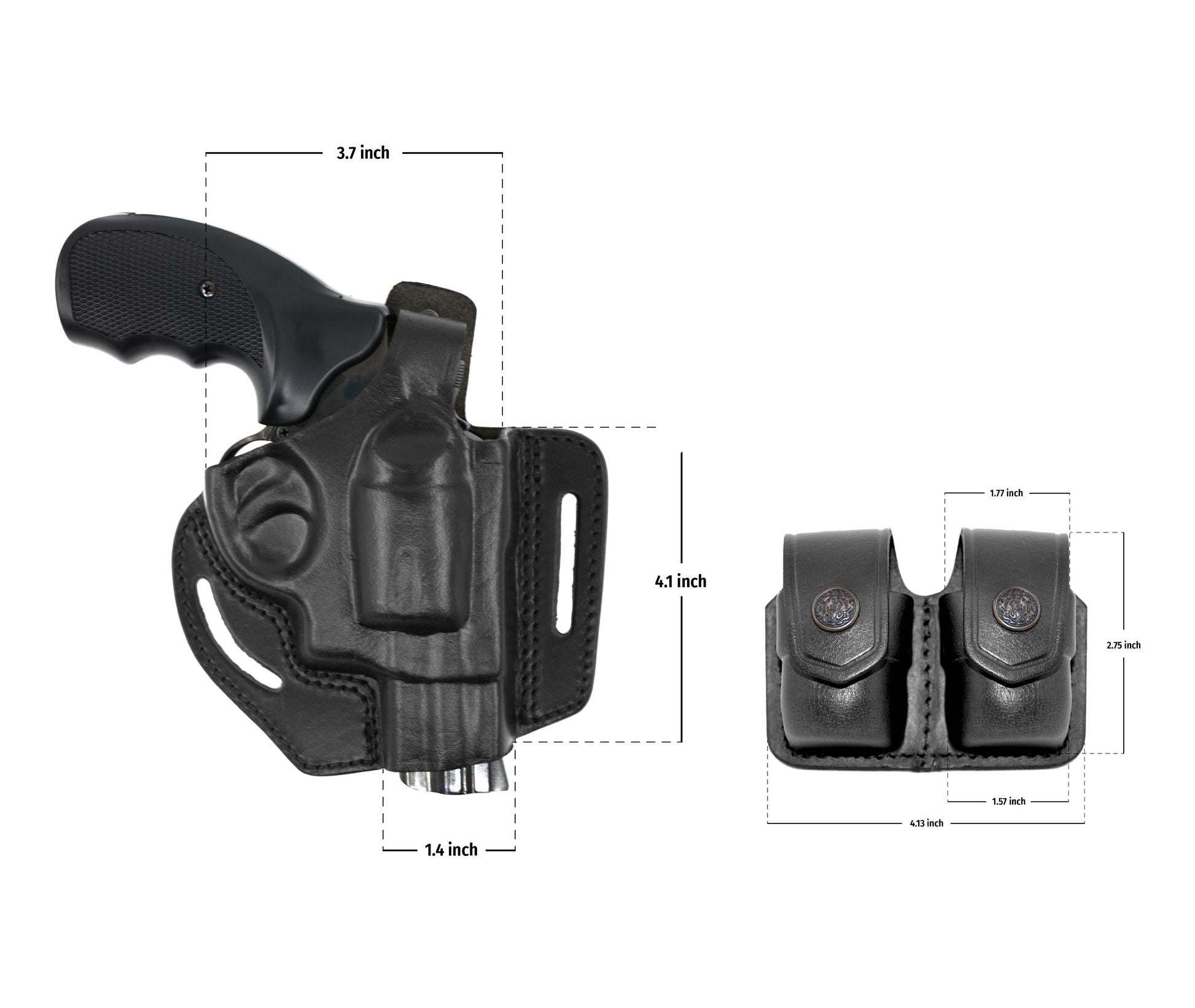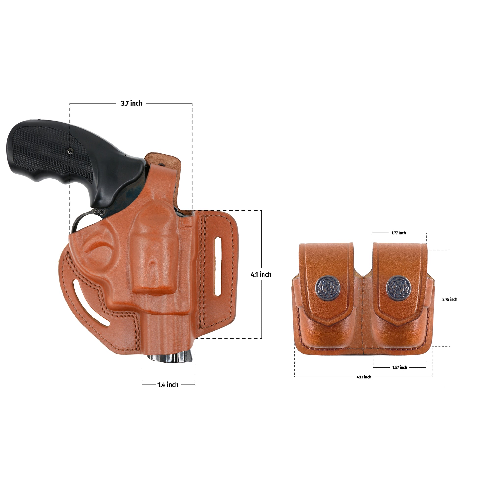 - Specifically fits 357 Magnum and similar revolvers for the best carry experience. Handmade Leather Double Magazine Pouch with retention flaps. Speedloader case holds two speedloaders. Flap with snap keeps speedloader securely in place. For 5-6 & 7 shot 38 Special and .357 Magnum speedloaders.