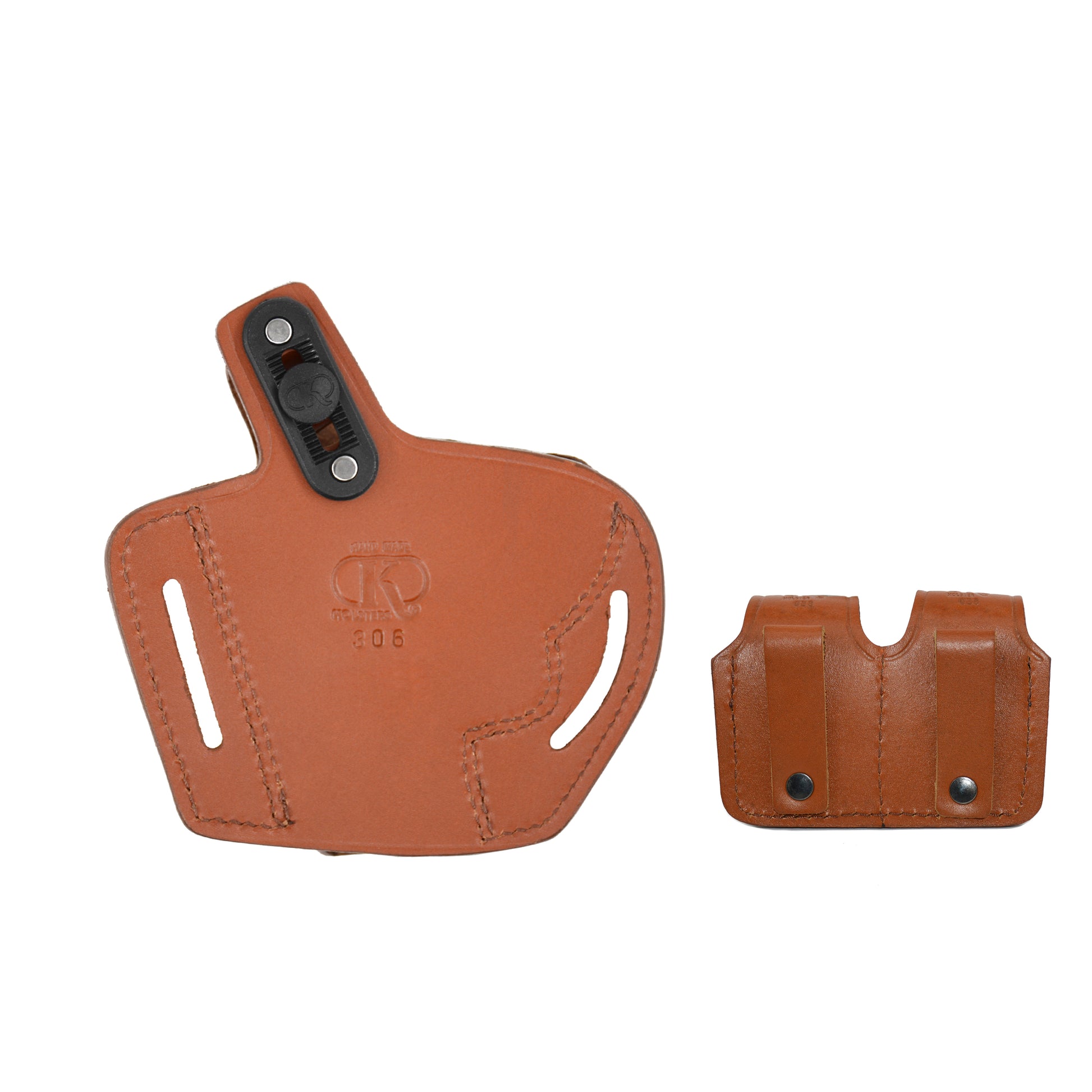 - Premium genuine cowhide leather belt retention holster excellent for open carry. The molded leather gives a snug fit with no rattle or movement.
