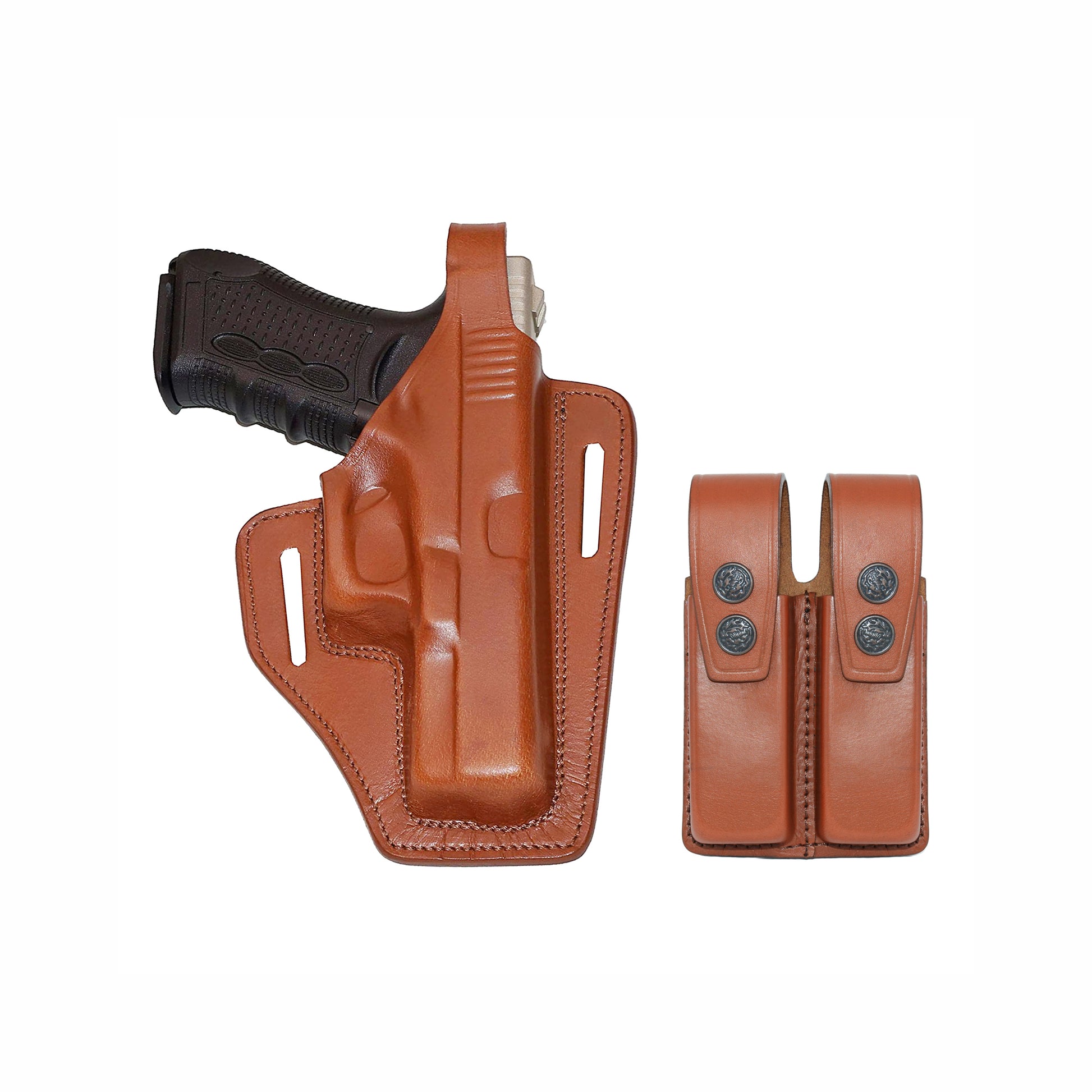 ALIS339092 Pancake Leather Holster Thumb Break RH & Double Magazine Pouch for Glock 19 Glock 23 Handmade!