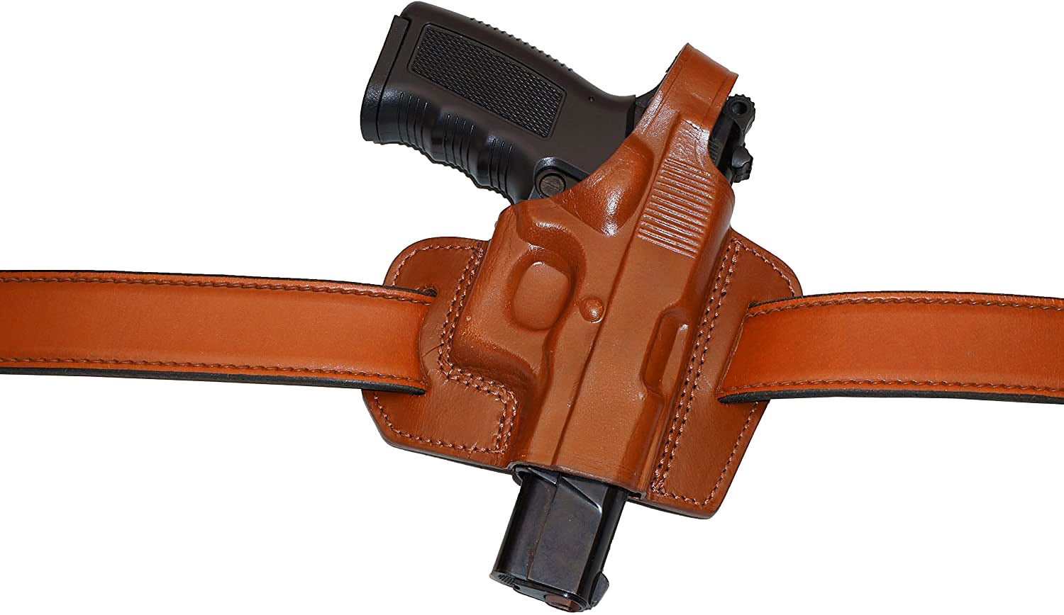 - Premium genuine cowhide leather belt retention holster excellent for open carry. - Pancake design keeps the weapon close to the body, enhancing concealment. The molded leather gives a snug fit with no rattle or movement. - It is secured by looping your belt through the slots tightening your belt. This pulls your 1911 pistol up close to your body providing a close fit.
