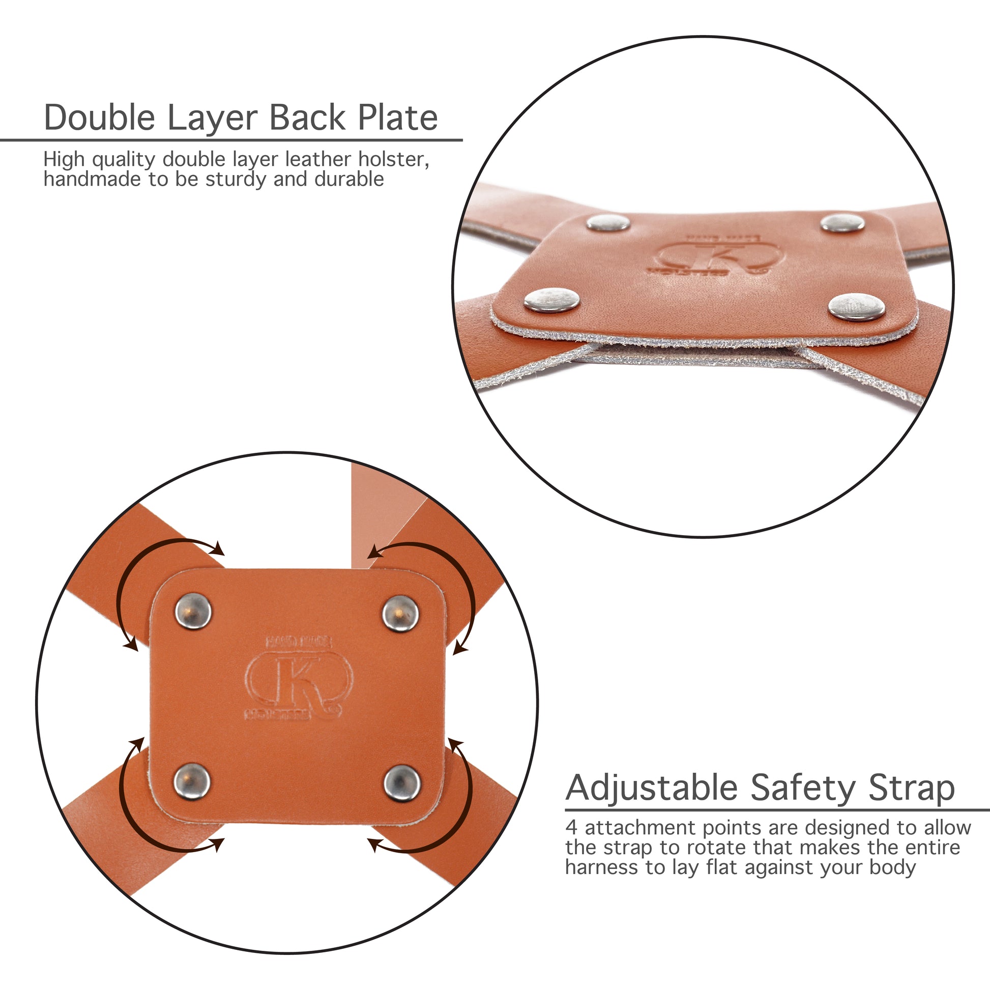- Freedom of movement; 7 Way Size Adjustment for a perfect fit on one side and the other side adjustable tie-down straps to attach to your belt supports for comfort, belt loop holds the holster securely if you have to run.