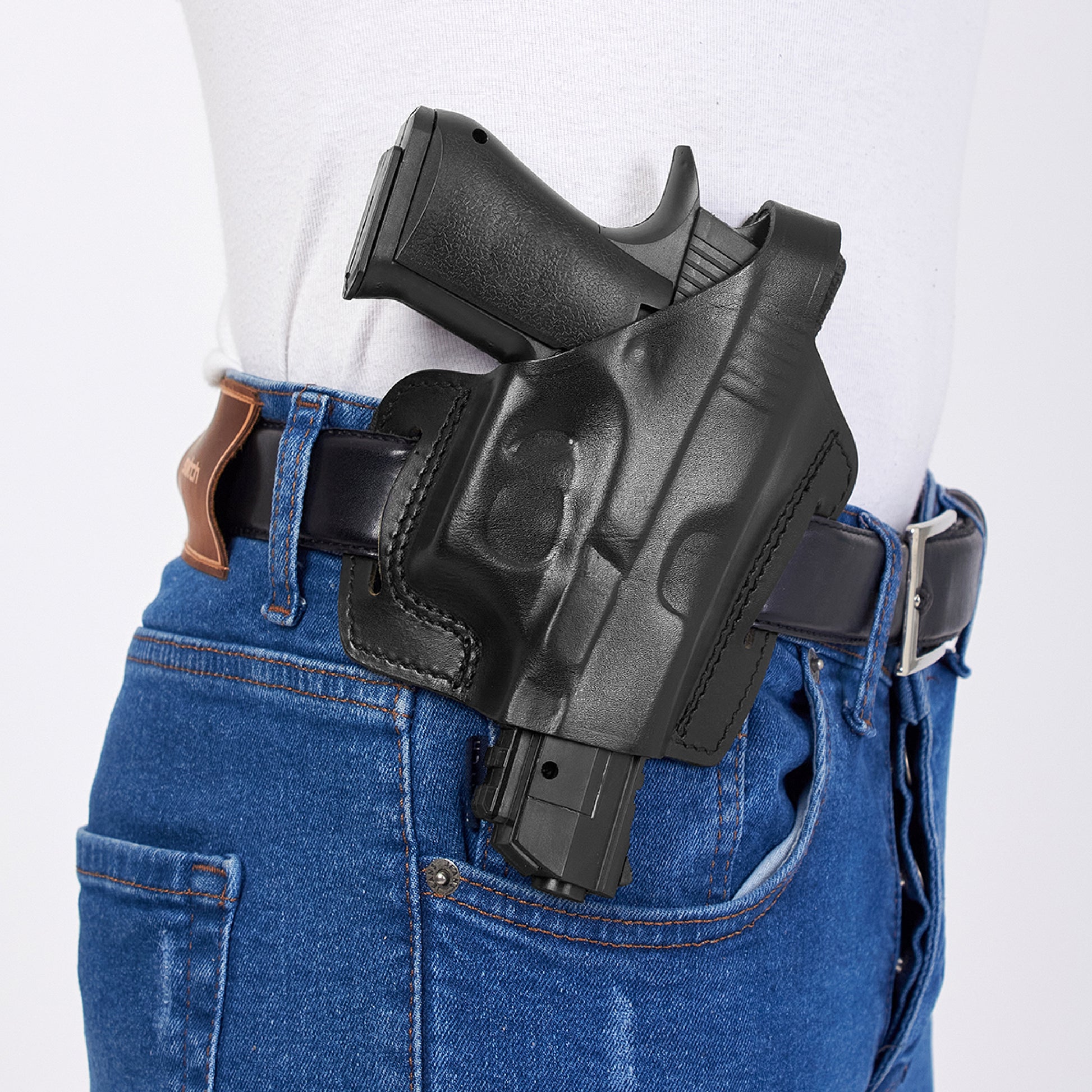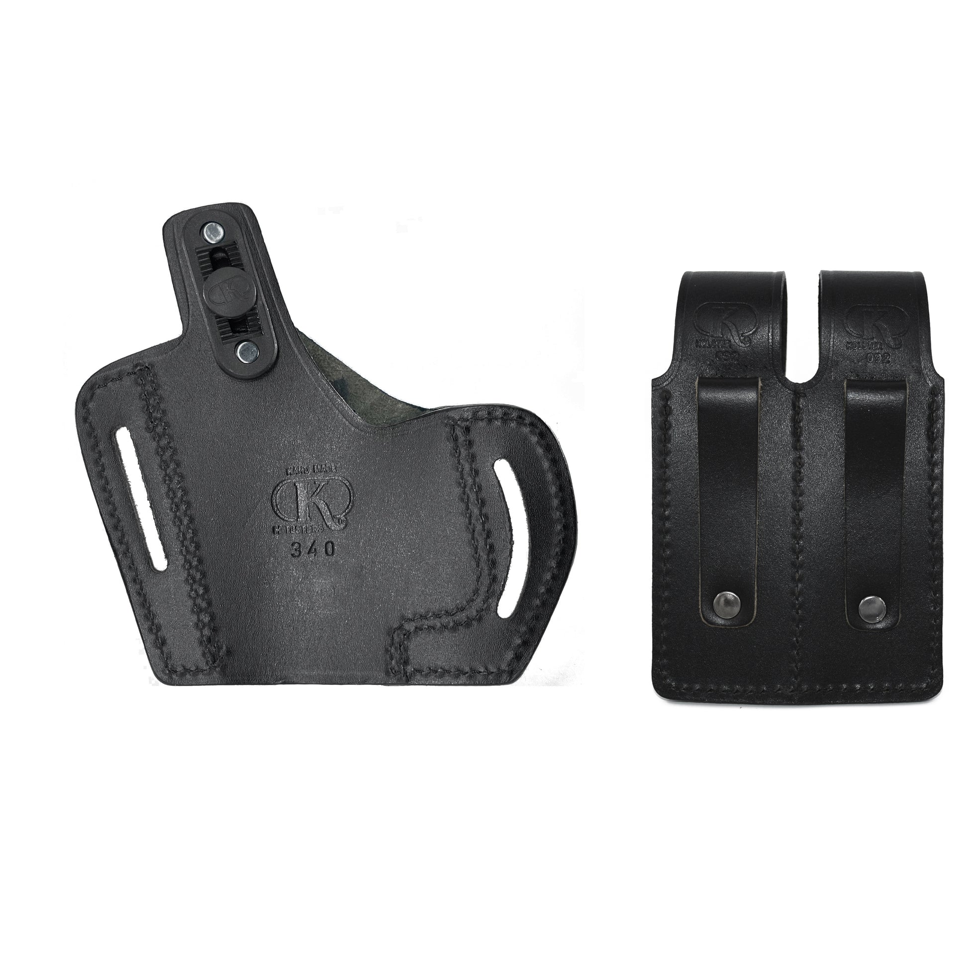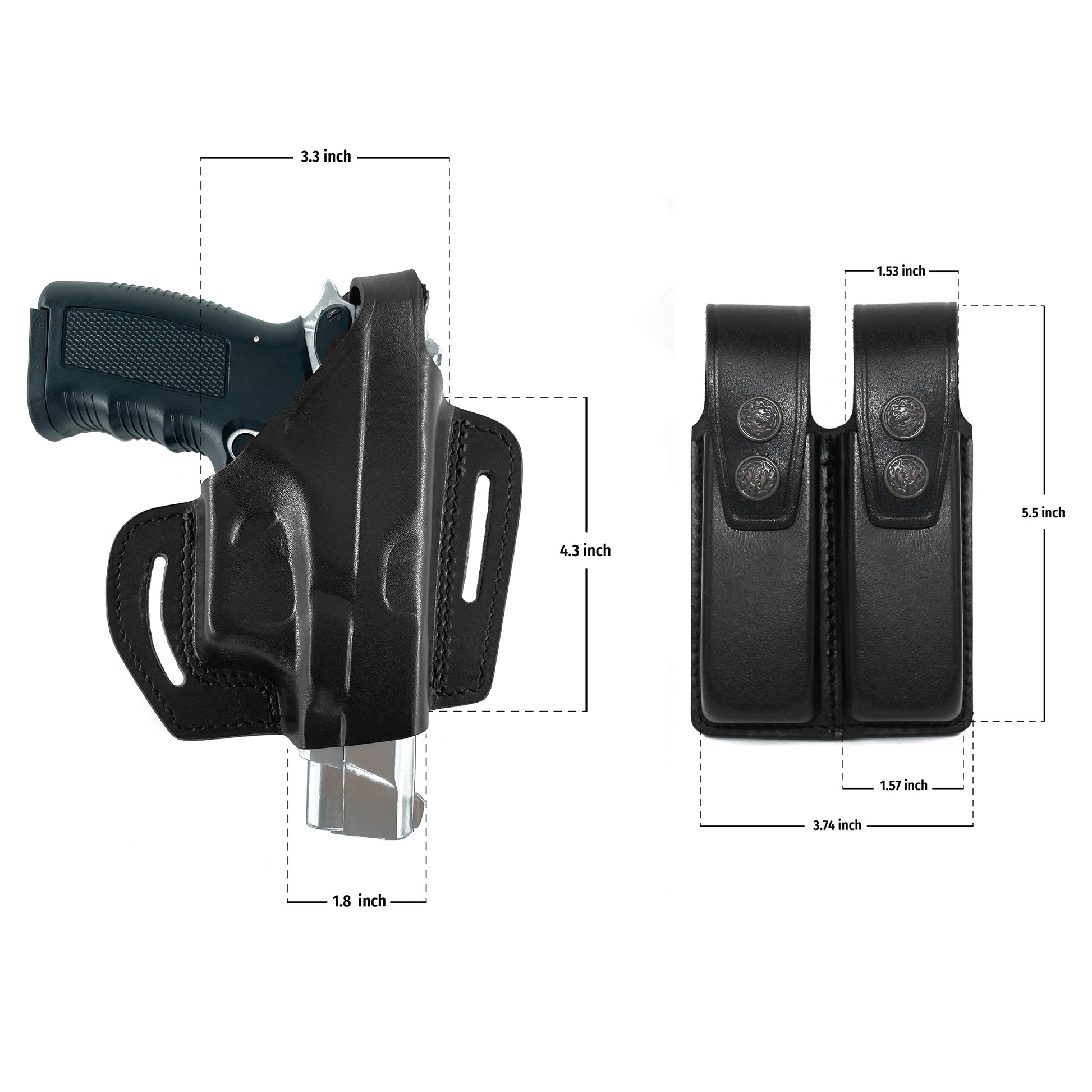 ALS34092 Pancake Leather Holster Open-end Thumb Break RH & Double Magazine Pouch for Glock 17 19 22 23 Handmade!