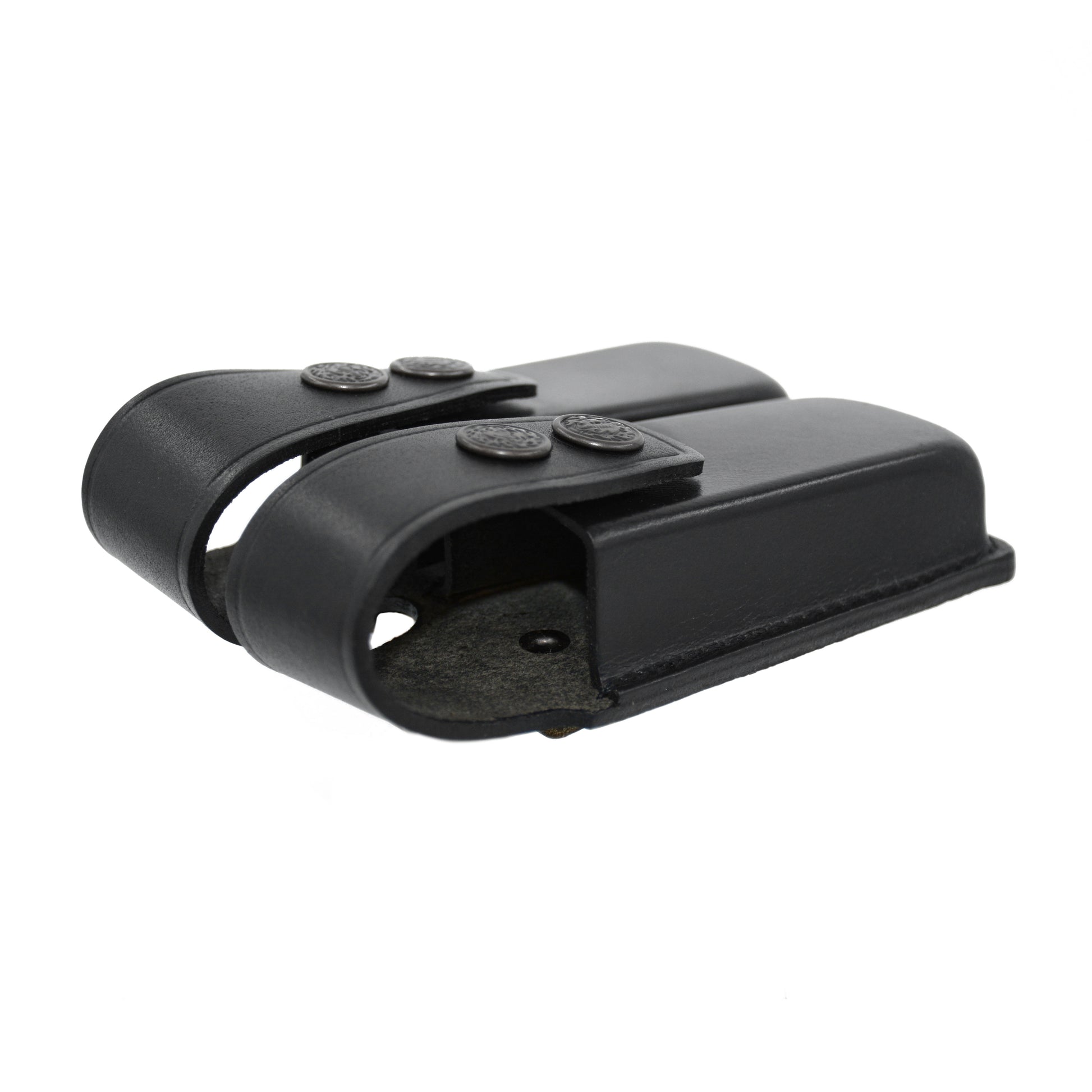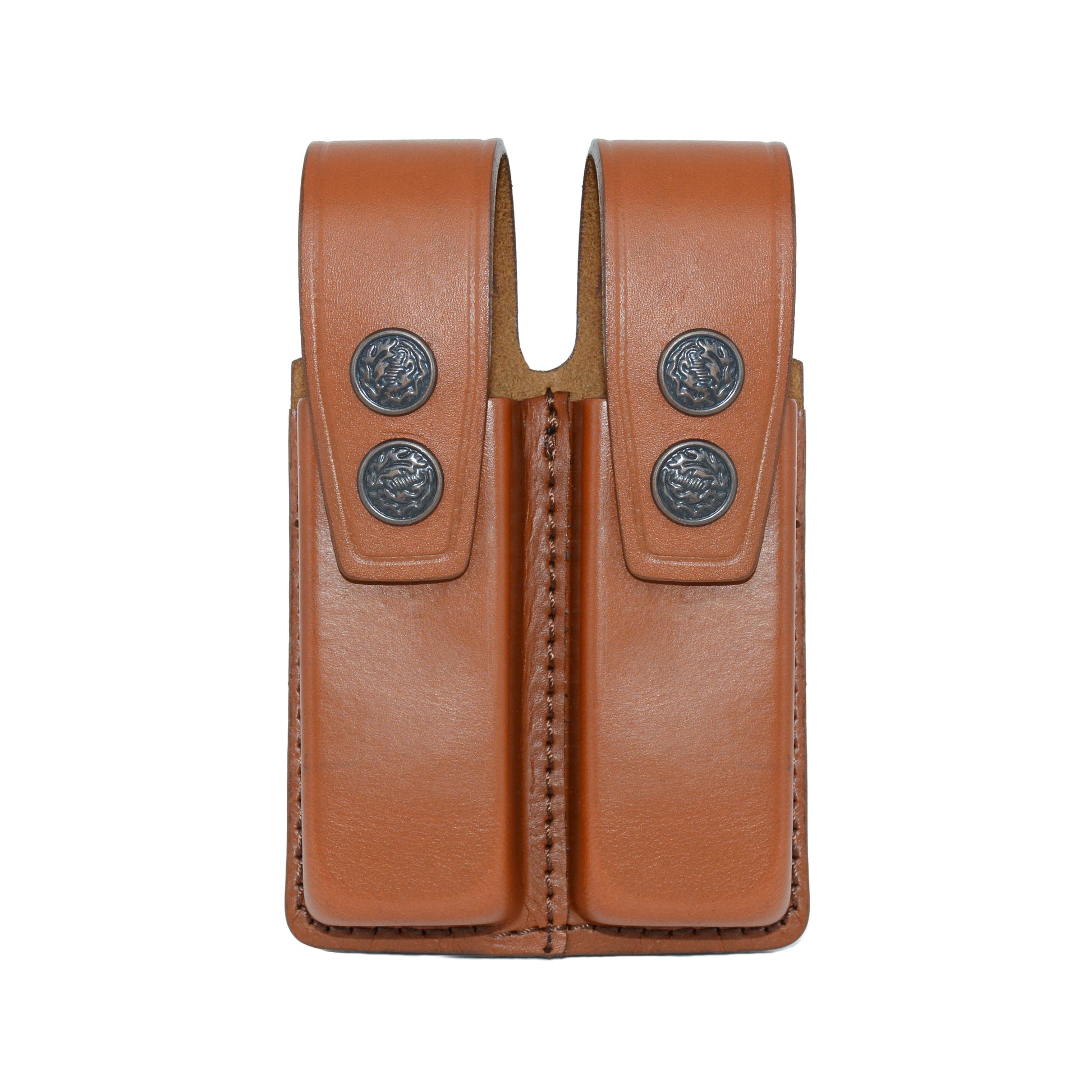 - High Quality Genuine Cowhide Leather. - Handmade Double Magazine Pouch with retention flaps. Flap with snap keeps magazine securely in place.