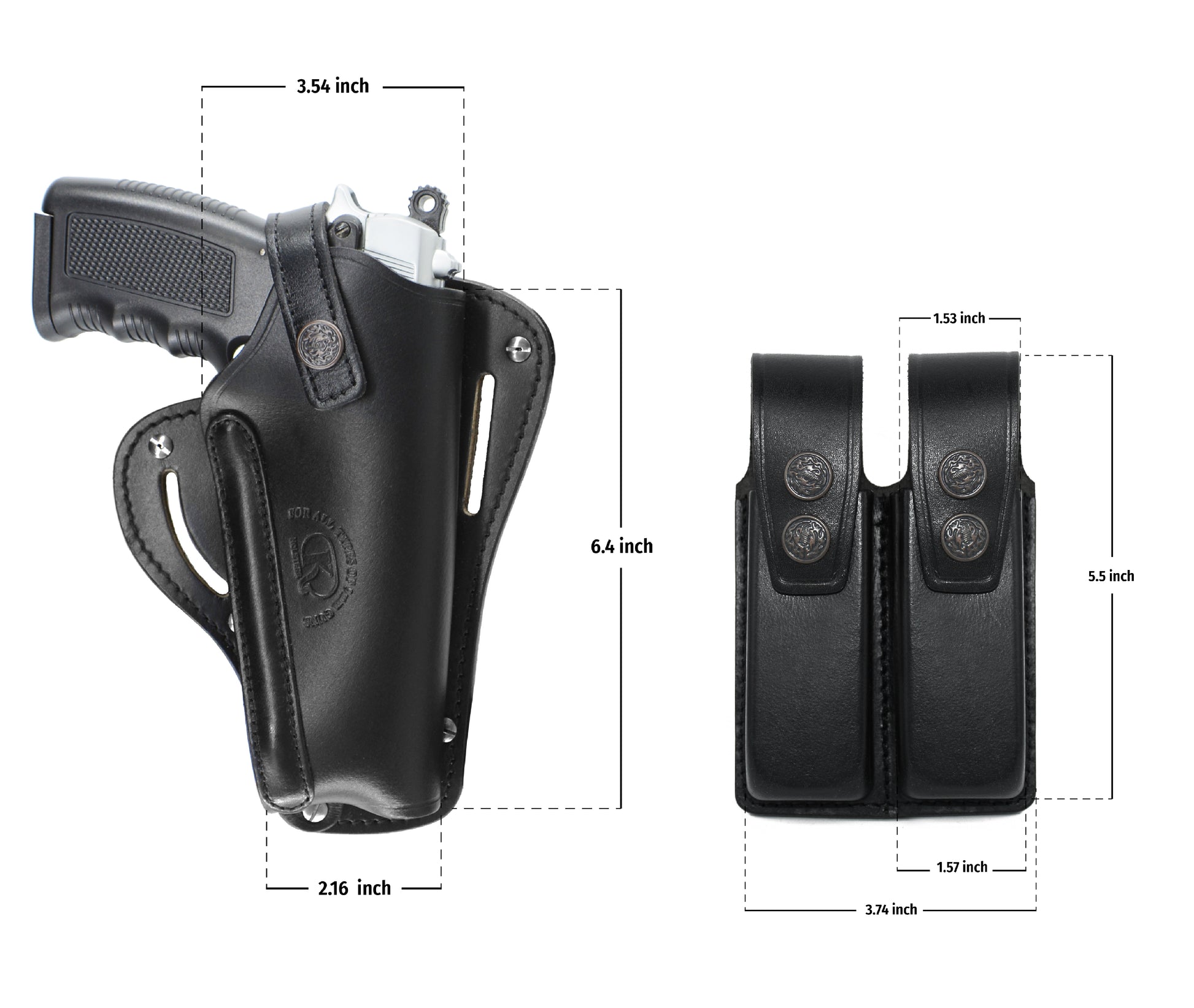 - Fits Medium through X-Large. We send extension for XXL and Larger body size for free. PLEASE SEND US A MESSAGE IF YOU ARE A BIG MAN Specifically fits GLOCK 17 19 22 23 26 27 for the best carry experience. Handmade Leather Double Magazine Pouch with retention flap. Flap with snap keeps magazine securely in place. There are two buttons on the flap side to adjust for longer mag. Holds two magazines. Available in BLACK & BROWN leathers.