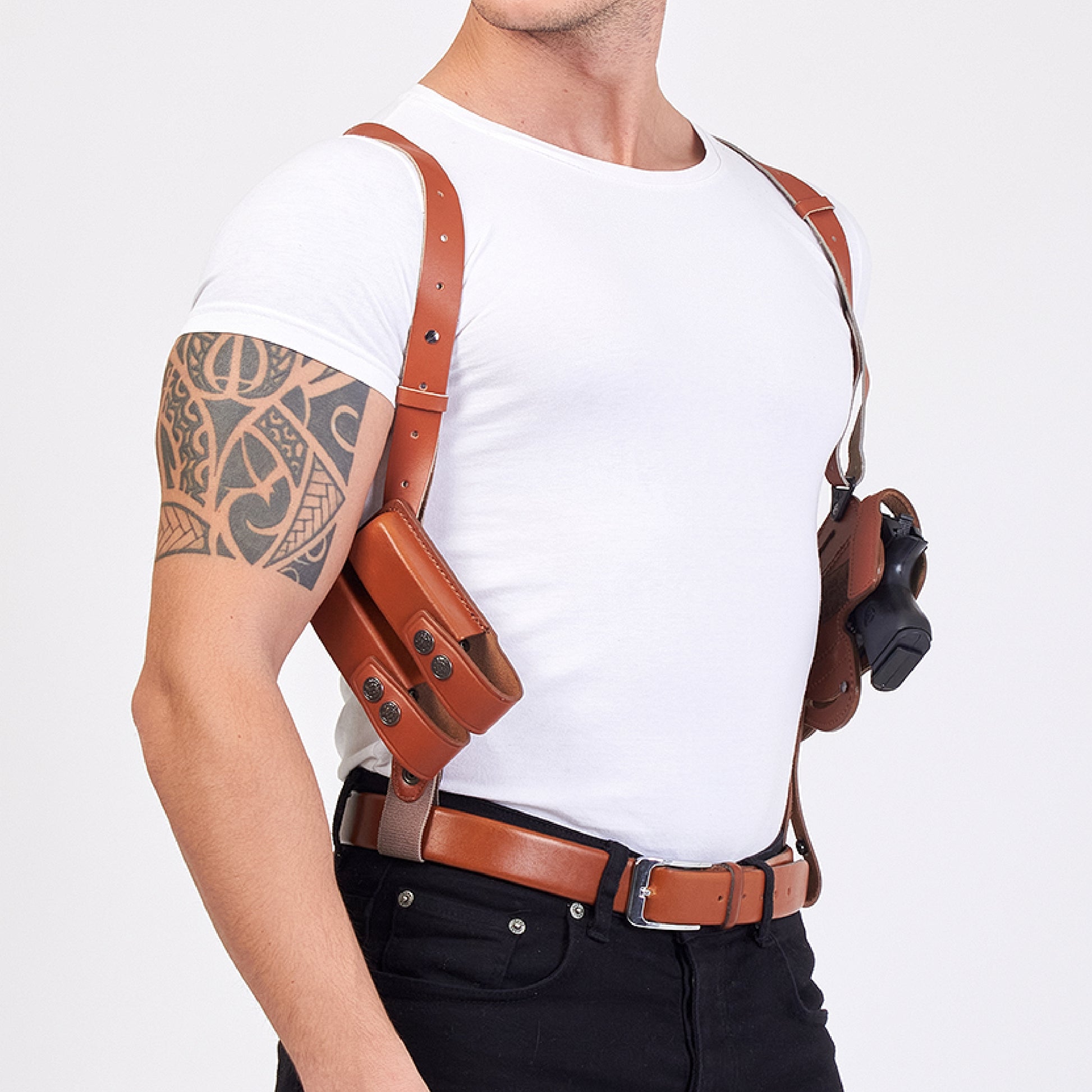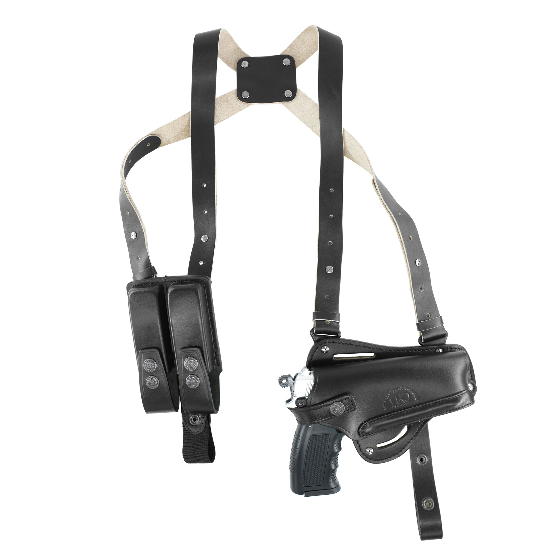 K446 Vertical-Horizontal Shoulder & Belt Holster with Double Mag Pouch Fits Beretta CZ 75 Browning HP Sig Sauer with 4" Barrel (3in1)