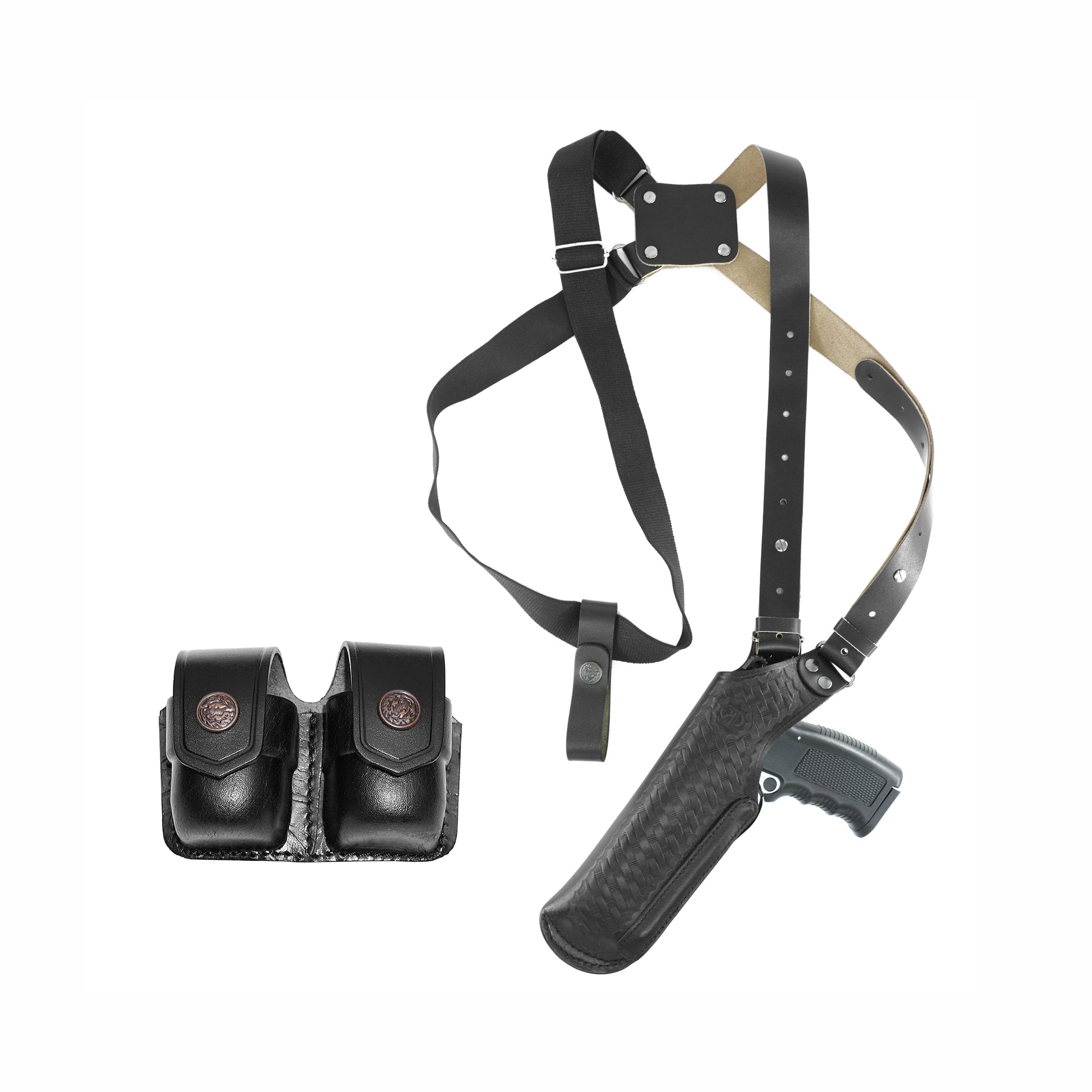Koltster K40038-357 Basketweave Leather Vertical Shoulder Holster & Double Speedloader Case 357 Magnum & Similar Revolvers 4" RH Handmade! (Black)