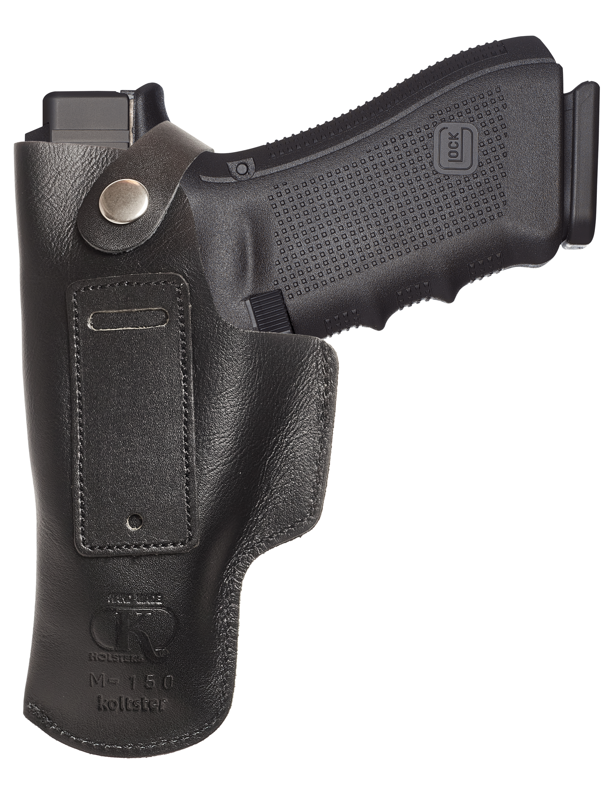 Koltster Leather Holster for Glock 19, IWB Holster for Glock 17 20 21 31 45 | S&W M&P Shield and Similar Sized Handguns, Concealed Carry Genuine Leather Holster with Belt Clip, Black Handmade (KM150)